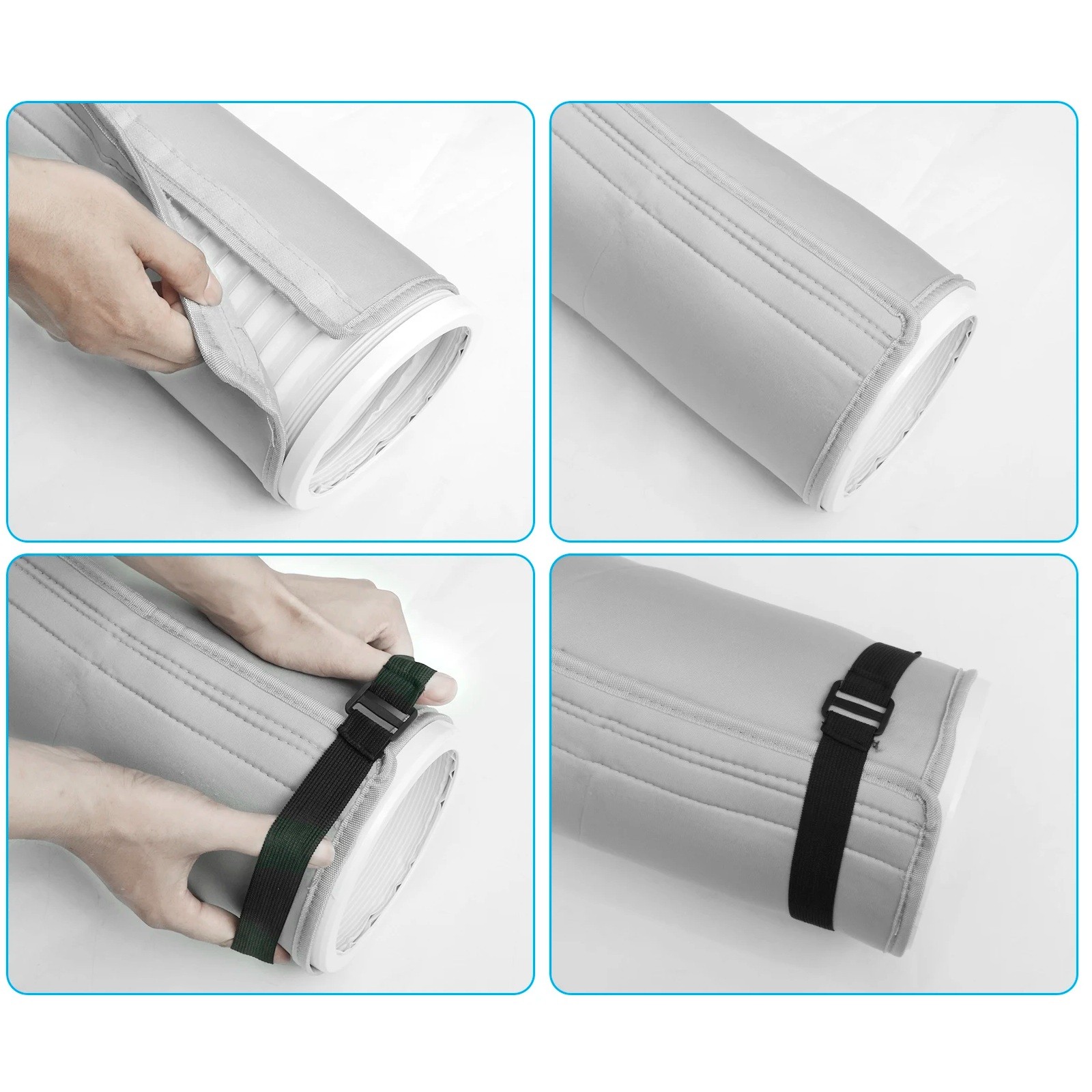Denna isolerande skyddskåpa för luftkonditioneringsslang med måtten 150 x 53,3 cm är designad för att öka effektiviteten i kylningen och minska energiförluster orsakade av varm luft inuti avgaslangen. Kåpan hjälper till att blockera direkt ljus och värme, vilket avsevärt begränsar uppvärmningen av rummet. Den kan användas året runt, eftersom den skyddar slangen mot UV-strålning och förlänger dess livslängd. Den passar alla vanliga mobila luftkonditioneringar samt väggmonterade enheter med avgaslangar med en diameter på 12,7 cm (5") och 15 cm (5,9"). Tack vare det universella kardborrebandet och de robusta nylonremmarna sitter kåpan utmärkt även i böjen av slangen och lossnar inte.