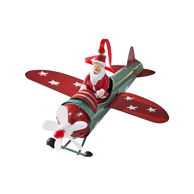 Järn Julhängare 12 x 12,5 cm Retro flygplan med Santa Antik hängande dekoration för gran fönster dörrkarm