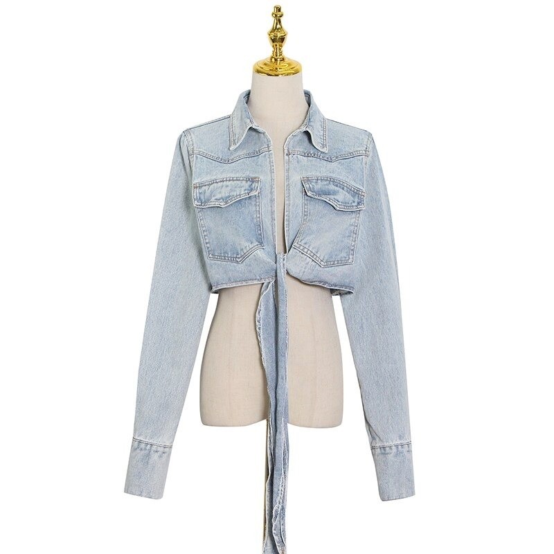 Kort jeansjacka med knytstängning.