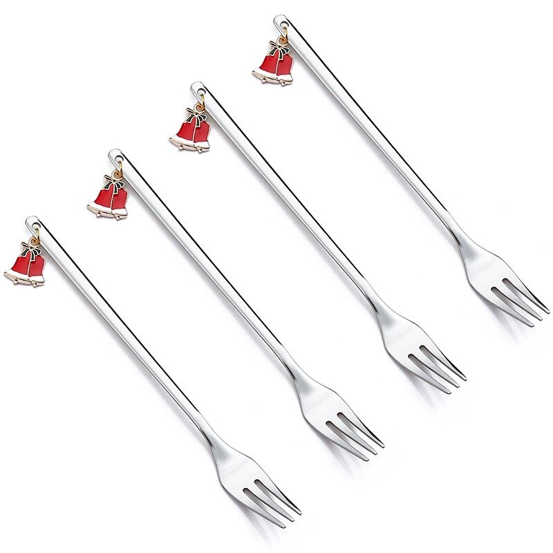 Julgafflar med klockor kommer säkert att lägga till en touch av julglädje till alla kök. Varje gaffel är gjord av högkvalitativt rostfritt stål och dekorerad med ett hänge med jultema . Passar som julklapp till dina nära och kära.