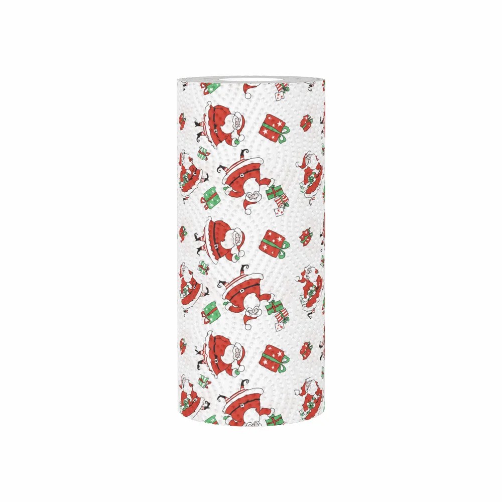 Julkpapper kökshanddukar 1 rulle 48 ark Hållbara absorberande handdukar Motiv Jultomte Juldekorerande handdukar för städning och dukning