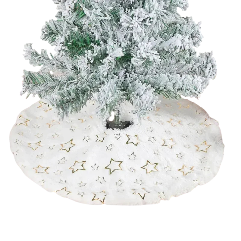 Denna julmatta under granen med stjärnmotiv är ett imponerande och mångsidigt tillbehör som mjukar upp och enar utseendet på din mindre julgran. Storleken 40 x 40 cm ger idealisk plats för mindre eller bordsgranar, dekorativa arrangemang eller ljusdekorationer. Stjärnmotivet ger mattan en lekfull, men samtidigt elegant look som passar perfekt i både moderna och traditionella hem. Den mjuka ytan hjälper till att dölja granens stativ, skyddar möbler från små ytor från dekorationer och skapar en stilfull bas för hela dekorationen.