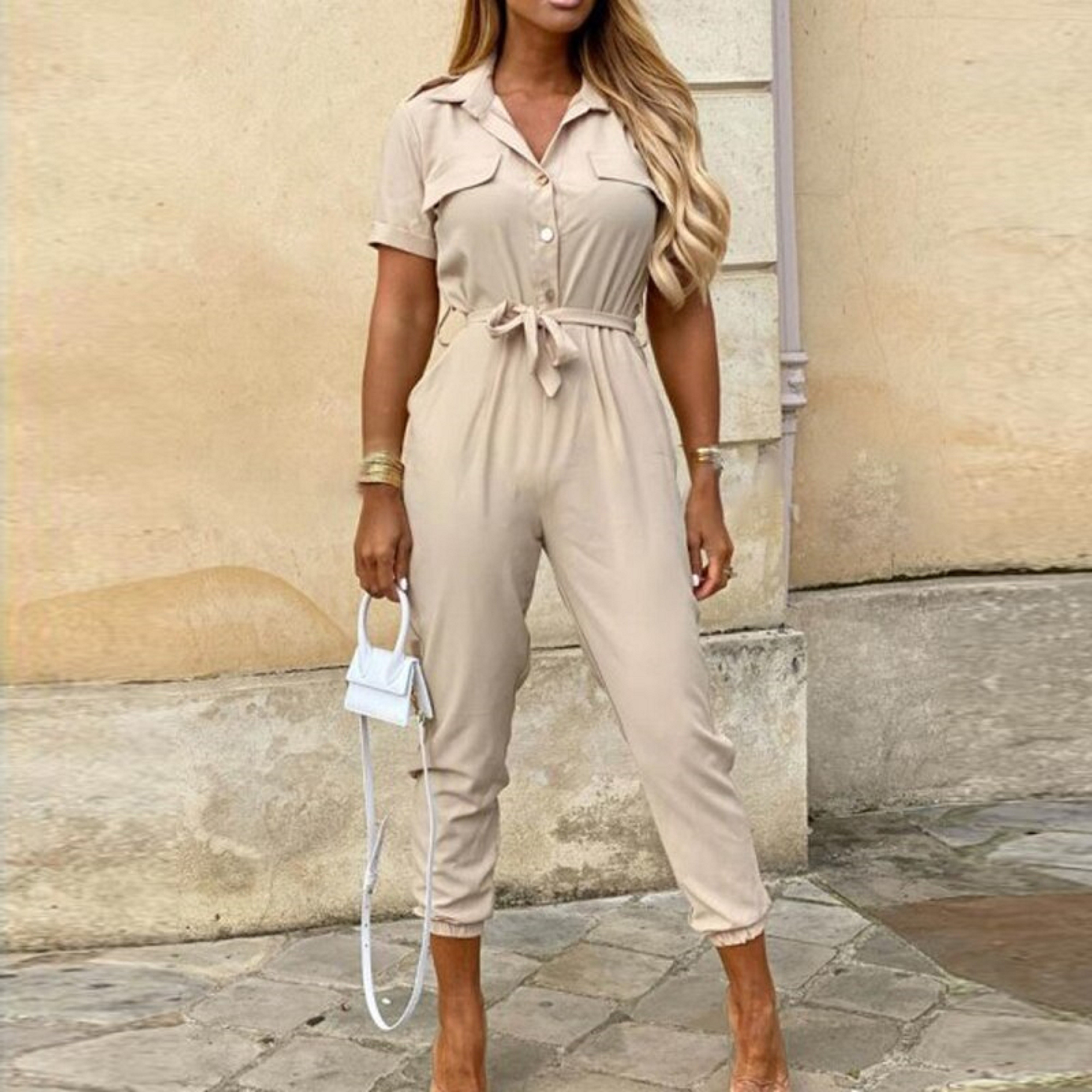 Jumpsuit för kvinnor med knappar och knytband
