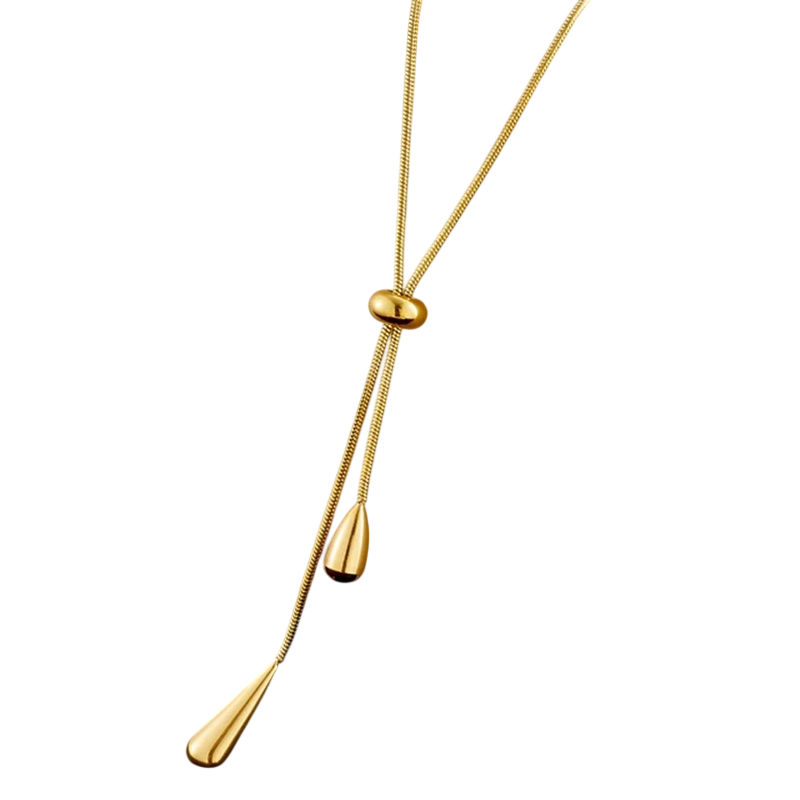 Detta iögonfallande set med halsband och örhängen i elegant droppdesign är det perfekta valet för kvinnor som vill stråla vid festliga tillfällen såväl som under vardagen. Den gyllene tonen ger en lyxig och tidlös känsla, medan de mjukt formade dropparna tillför en romantisk och feminin look. Tack vare den justerbara längden kan halsbandet enkelt anpassas till olika typer av ringningar och klädstilar. Kombinationen av modern glans och vintage-känsla skapar harmoni mellan elegans och modeoriginalitet. Detta guldset med smycken för kvinnor är det perfekta tillbehöret för bröllop, jubileum, födelsedagar, fester, banketter och även för vardagsbruk.