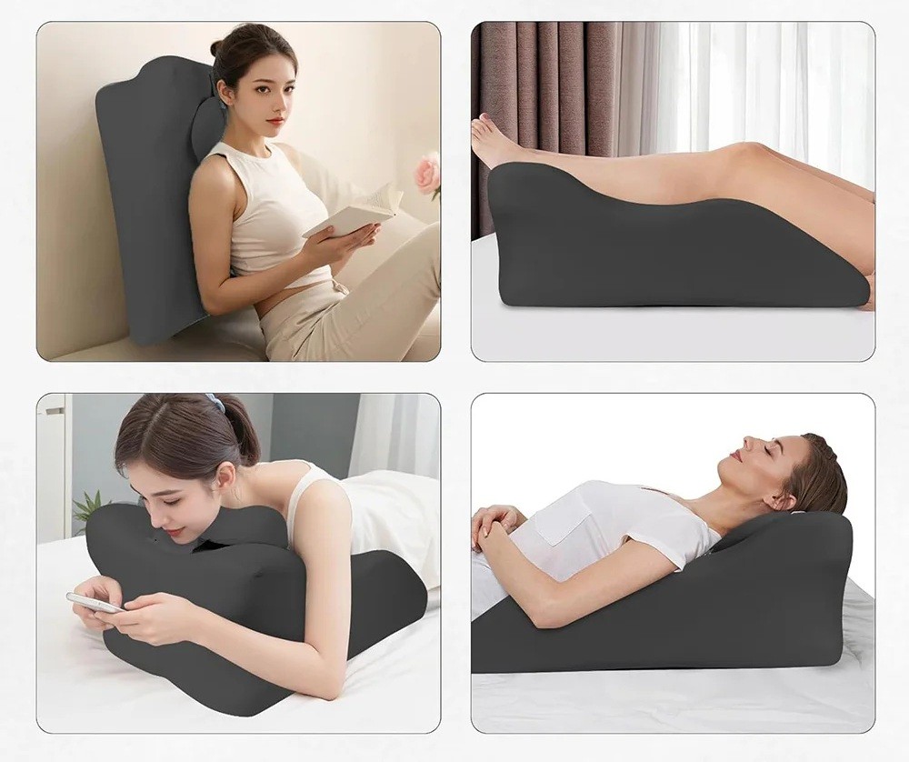 Den justerbara kilkudden är ett praktiskt hjälpmedel för bekväm avkoppling hemma. Tack vare den ergonomiska formen ger den stabilt stöd för benen och hjälper till att skapa en komfortabel kroppshållning vid liggande. Flera stödjande zoner säkerställer en jämn fördelning av trycket och en behaglig känsla vid användning. Kudden kan användas vid avkoppling, läsning eller vila efter en lång dag. Denna kudde erbjuder en kombination av ergonomi, komfort och praktisk användning.