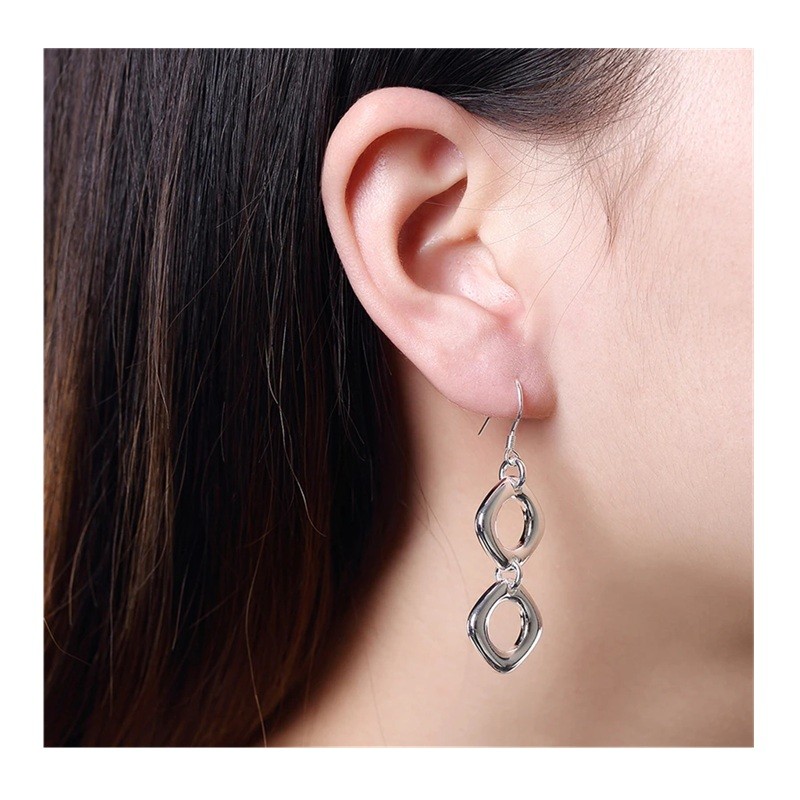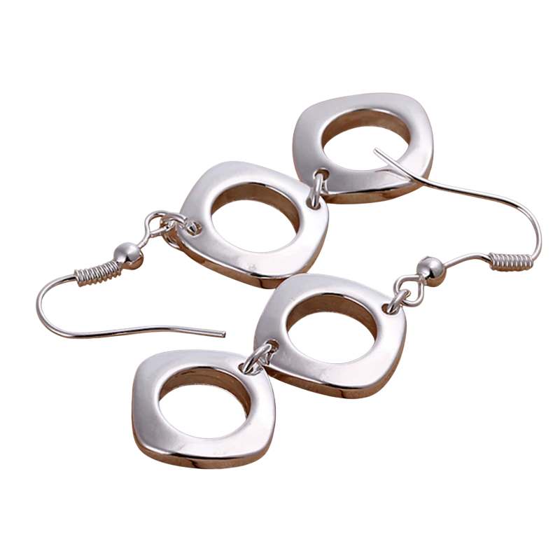 Kaskadörset med örhängen och halsband i sterling silver 925 Rund fyrkantig geometrisk design Damernas bröllopssmycken