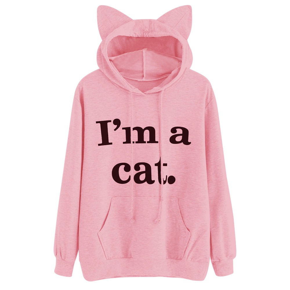 Den här tröjan med inskriptionen Jag är en katt och en huva med kattöron kommer att göra dig till en.