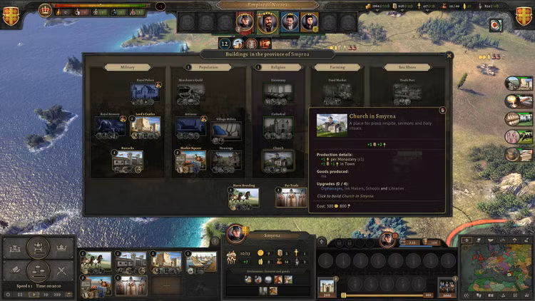 Börja din kampanj med ett av mer än 200 historiska kungariken och utöka ditt territorium till över 300 provinser. Bygg upp din ekonomi och producera värdefulla varor samtidigt som du ser till att dina länder kan stödja din armé.