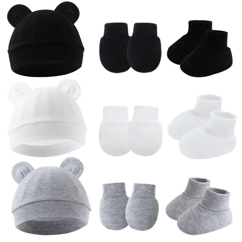 • Innehåll i förpackningen: 1× mössa, 1× vantar (par), 1× sockskor (par)