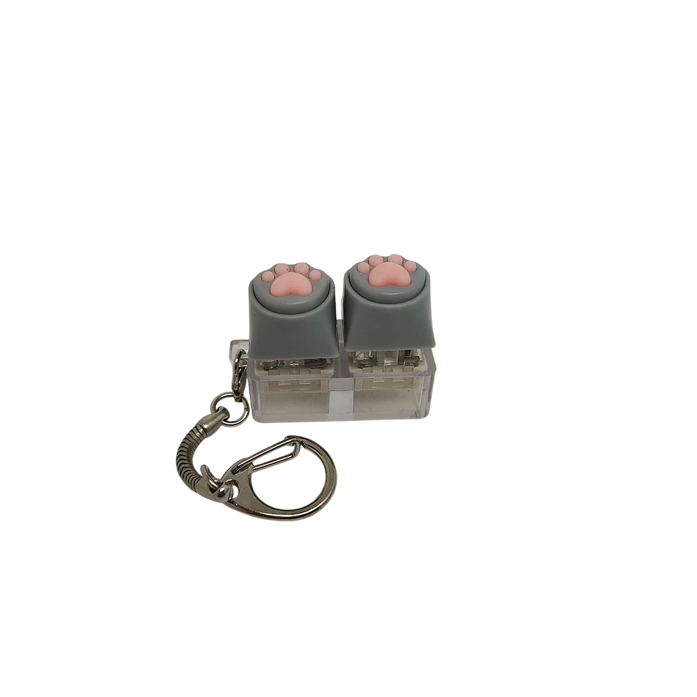 Denna mini antistress nyckelring med två katt-tassar är perfekt för alla som behöver ta en paus och koppla av under dagen. Varje tass är utformad som en knapp med en realistisk tryckeffekt – vid tryckning avger den ett behagligt klickljud liknande ett tangentbord.
