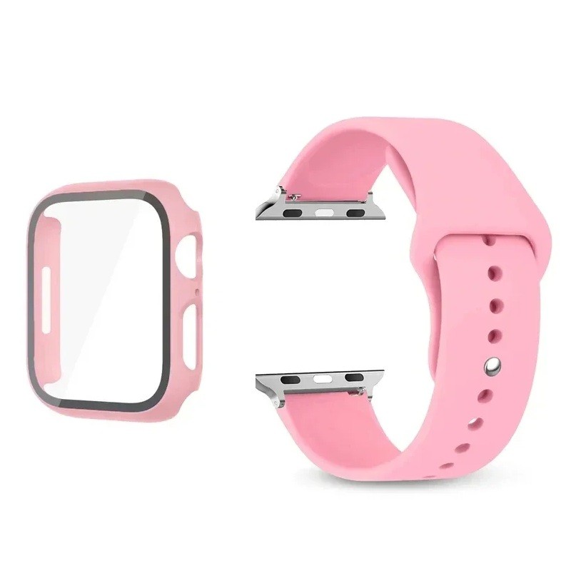 Komplett skyddssats för Apple Watch 40 mm Series 6/5/4/SE – 9H härdat glas för skärmen, skydd med matt ram och justerbart armband