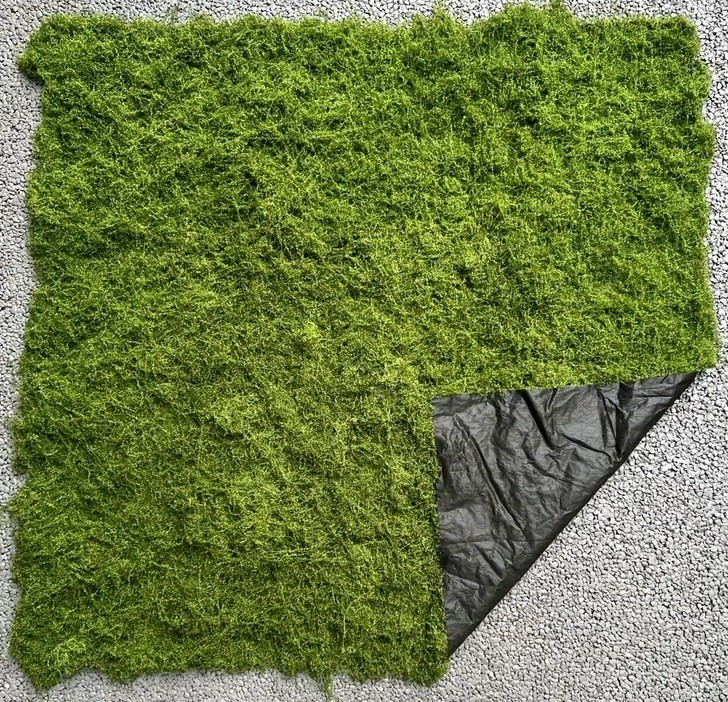 Dekorativ gräsbeläggning är idealisk för att livfullt förnya bostadsutrymmen, kontor, skyltfönster och kreativa hörn. Den realistiska strukturen av mossa ger rummet djup och visuell intressanthet. Konstgräsmatta är lämplig där det inte är möjligt att använda levande växtlighet, men där ett naturligt utseende önskas. Tack vare det kvadratiska formatet är den lätt att installera och anpassa till olika projekt. Den kan placeras på golv, vägg eller användas som en del av en dekorativ komposition.