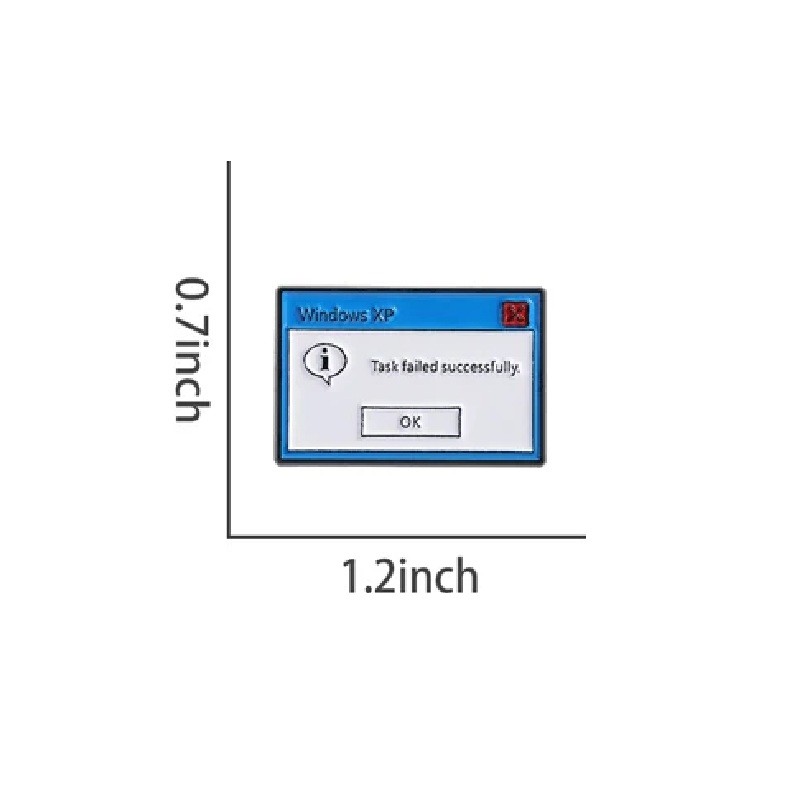 Denna kontors- och modebrosch fångar uppmärksamhet med det ikoniska motivet av datormeddelandet „Windows XP – Task Failed Successfully“, som är välkänt främst bland IT-entusiaster. Den roliga frasen kombinerar ironi, nostalgi och modern stil. Broschen framstår som diskret, men kan ändå omedelbart fånga omgivningens uppmärksamhet. Den är perfekt som en stilfull detalj i arbetsmiljöer såväl som vid informella möten. Den kompletterar perfekt en kavaj, skjorta, tröja eller en enkel vardagsoutfit.