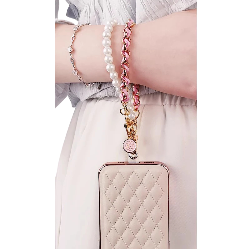 Stiligt handledssnöre med pärlor och blommahängsmycke möjliggör säker hållning av telefonen och skyddar enheten mot fall. Fullständig beskrivning