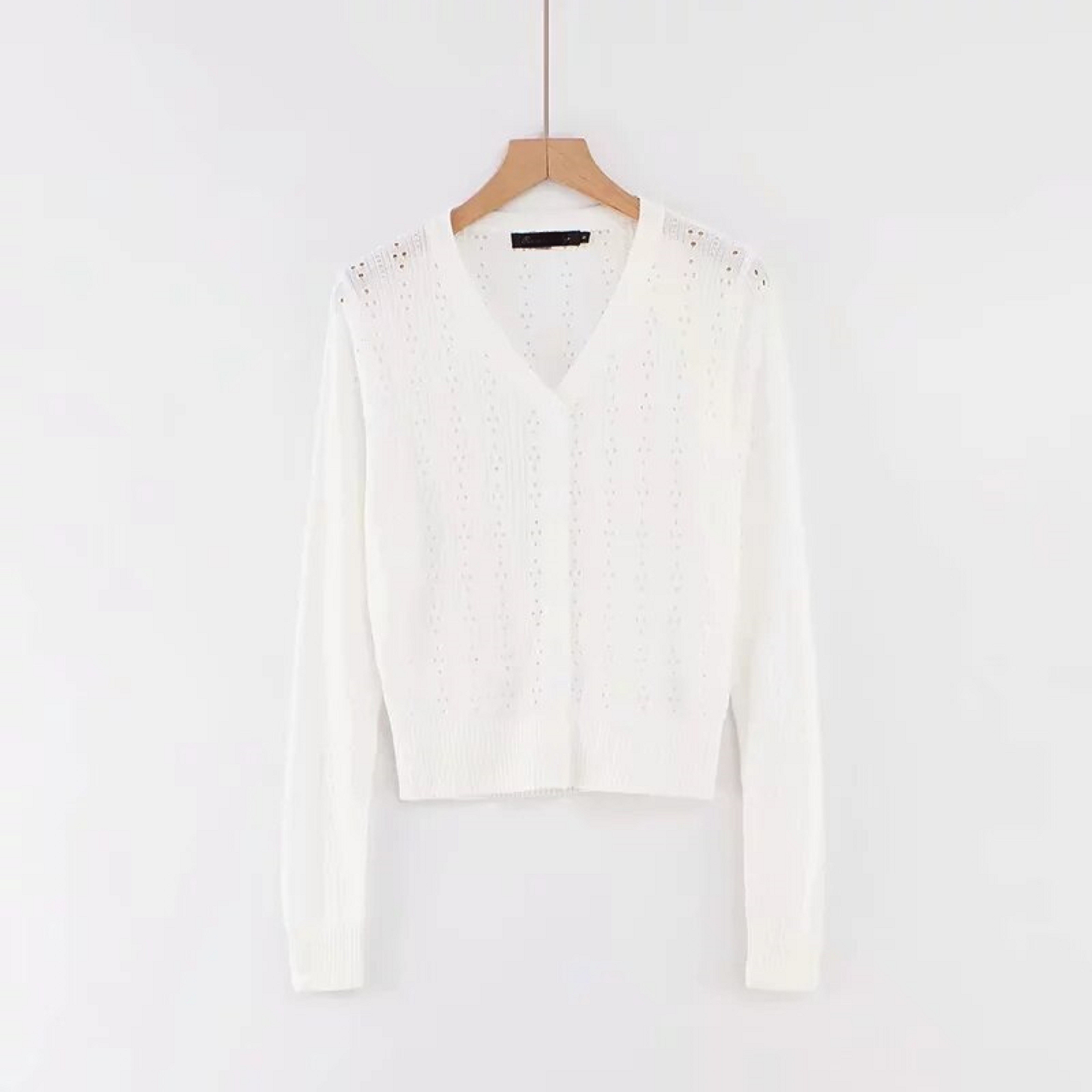 Kort stickad tröja för kvinnor