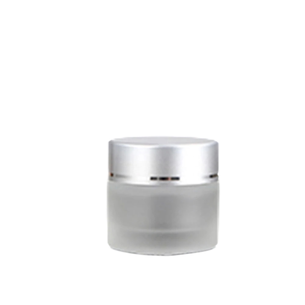 Översta delen av burken har silver transparent utförande, vilket kompletterar utseendet på glasbehållaren. Kombinationen av glas och det metalliska utseendet på locket skapar en enkel och universell design som är lämplig för olika typer av kosmetiska produkter.