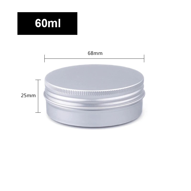 Kosmetisk fyllbar burk 60 ml Aluminium skruvlock burk silver 68 × 25 mm Förpackning för kräm balsam salva kosmetik i kosmetikväska