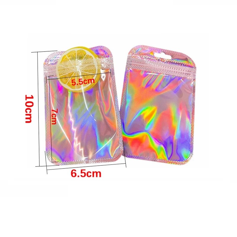 Kosmetisk holografisk necessär 10 × 6,5 cm genomskinlig förvaringspåse för småsaker resenecessär för kosmetik smycken och små tillbehör
