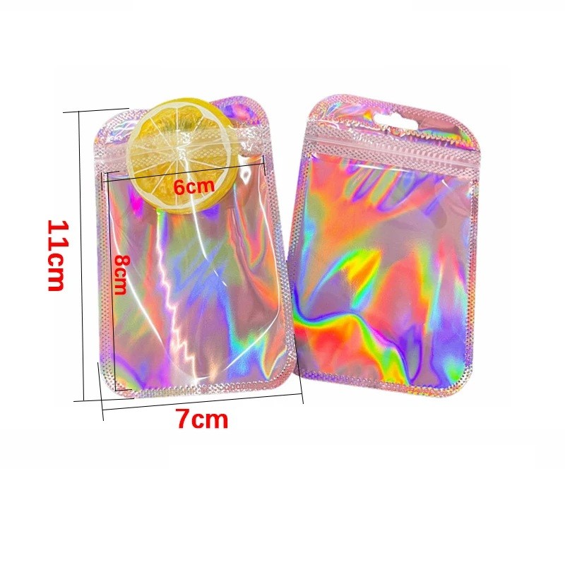 Kosmetisk holografisk påse 11 × 7 cm genomskinlig förvaringspåse för småsaker reseförpackning för kosmetik smycken och små tillbehör
