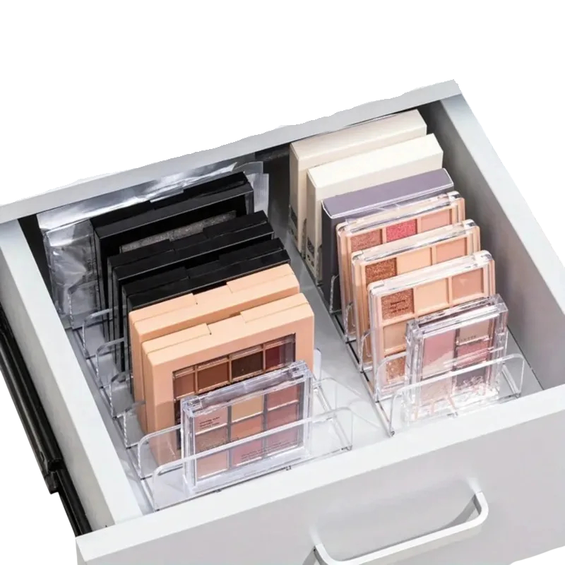 Organisern är lämplig inte bara för sminkbordet, utan även i badrummet eller arbetsområdet. Kompakta mått möjliggör placering även på mindre ytor, där den hjälper till att effektivt utnyttja det tillgängliga utrymmet. De enskilda facken är utformade för att separera produkter och förhindra att de blandas.