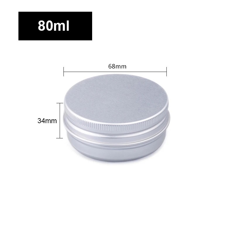 Kosmetisk påfyllningsbar burk 80 ml Aluminium skruvlock burk silver 68 × 34 mm Reseförpackning för kräm balsam salva kosmetik