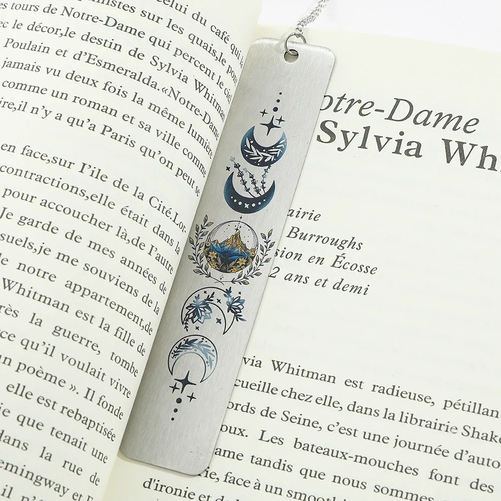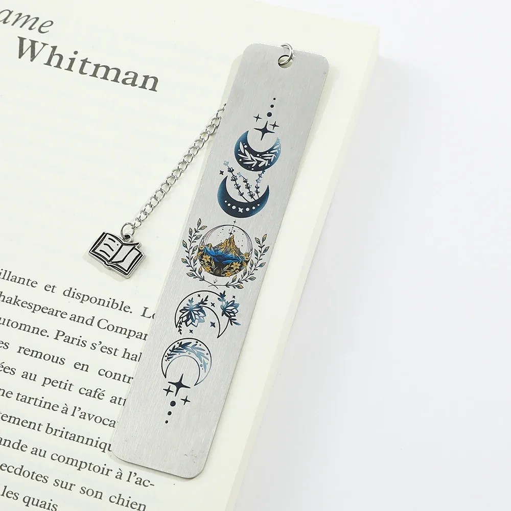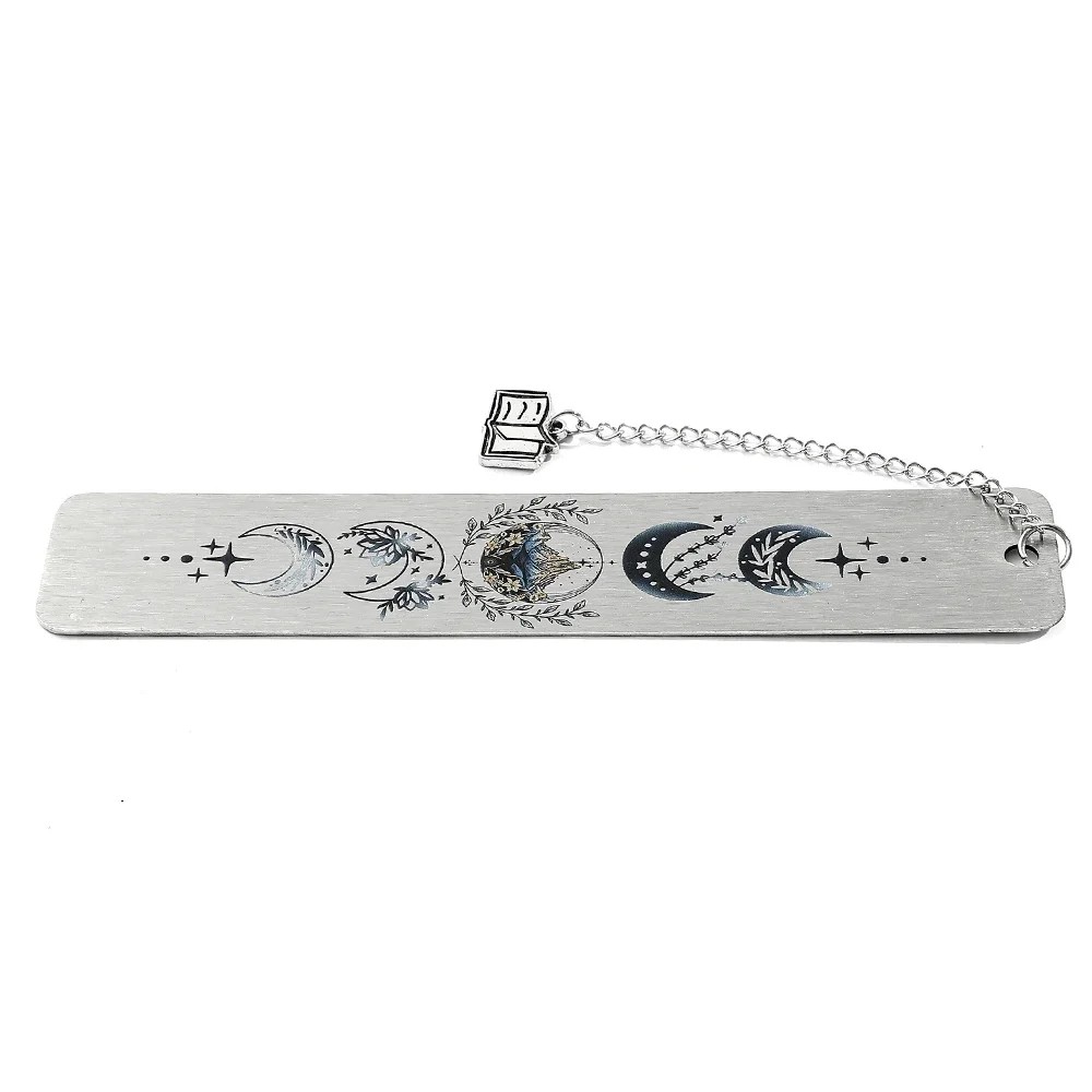 Kovbokmärke med kedja och dekorativt hänge Elegant bokmärke med subtilt motiv för läsälskare