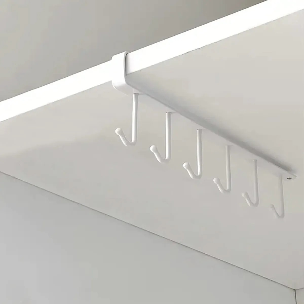 Tack vare den enkla designen är installationen mycket lätt. Hängaren kan hängas under hyllan eller i skåpet, vilket hjälper till att frigöra plats på arbetsytan eller i lådor. De hängande föremålen är också överskådligt organiserade.