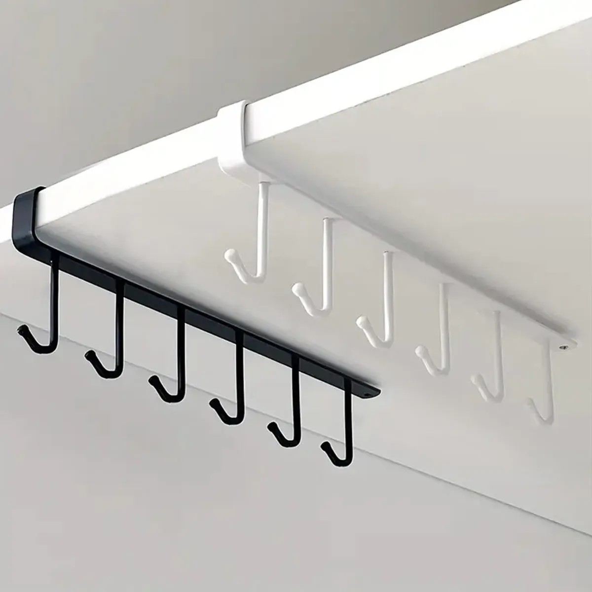 Kovhängande klädhängare med 6 krokar för skåp eller under hylla, järnhållare för muggar, bälten och köksredskap, svart organiserare