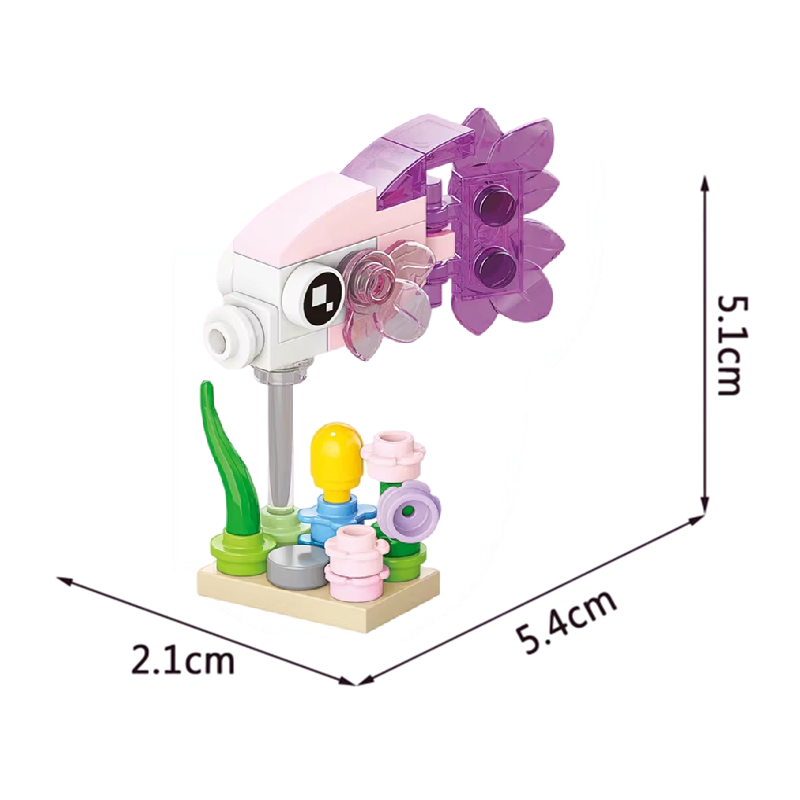 Denna färgglada mini byggsats av guppy erbjuder barn en kreativ aktivitet full av upptäckter och nöje. Med hjälp av 32 mikrobyggstenar kan de bygga en detaljerad 3D-modell med måtten 2,1 x 5,4 x 5,1 cm, som fångar uppmärksamheten med sin unika form och färger. De enskilda blocken passar exakt ihop och möjliggör enkel montering utan lim, så även nybörjare kan klara av det. Under byggandet utvecklar barnen finmotorik, koncentrationsförmåga, rumsuppfattning och logiskt tänkande. Den färdiga modellen är lämplig för att ställa ut, leka med eller samla andra mini-djur.