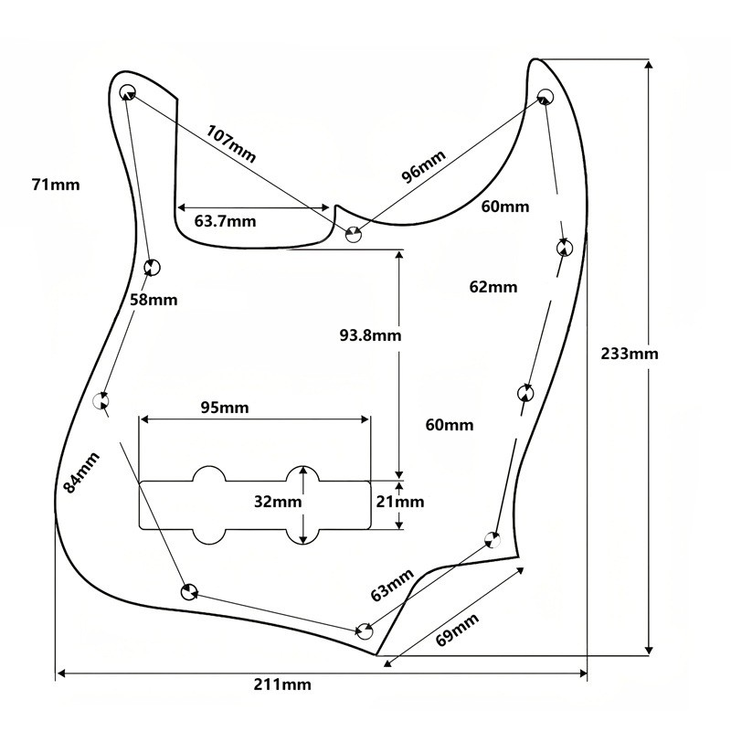 Pärlemorfärgen ger gitarren ett professionellt och lyxigt utseende som framhävs på scenen och i studion. Detta skydd ökar inte bara det estetiska värdet av instrumentet, utan förlänger också dess livslängd. Lätt konstruktion ökar inte instrumentets vikt och bibehåller bekväm spelning. Tack vare kompatibiliteten med amerikansk standard FD Jazz Bass är det en idealisk tillbehör för varje basgitarrist som värdesätter kvalitet och detaljer.