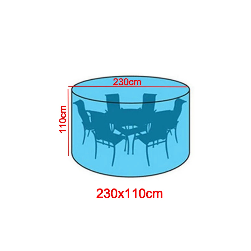 Kulatigt skyddande överdrag med måtten 230 × 110 cm erbjuder ett mycket effektivt skydd för utomhusmöbler och andra föremål som utsätts för ogynnsamma förhållanden under året. Tjockt polyester material skyddar mot fukt, damm, smuts och snö, så att möblerna förblir rena och redo att användas. Tack vare sin stora yta är överdraget lämpligt inte bara för bord, utan även för hela uppsättningar av stolar eller annan större utomhusutrustning som behöver täckas. Den universella runda formen säkerställer enkel installation och bred användning på olika typer av terrasser eller trädgårdar. Materialet är hållbart, stabilt och avsett för långvarig utomhusanvändning utan betydande slitage.
