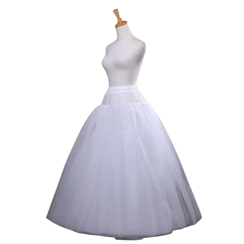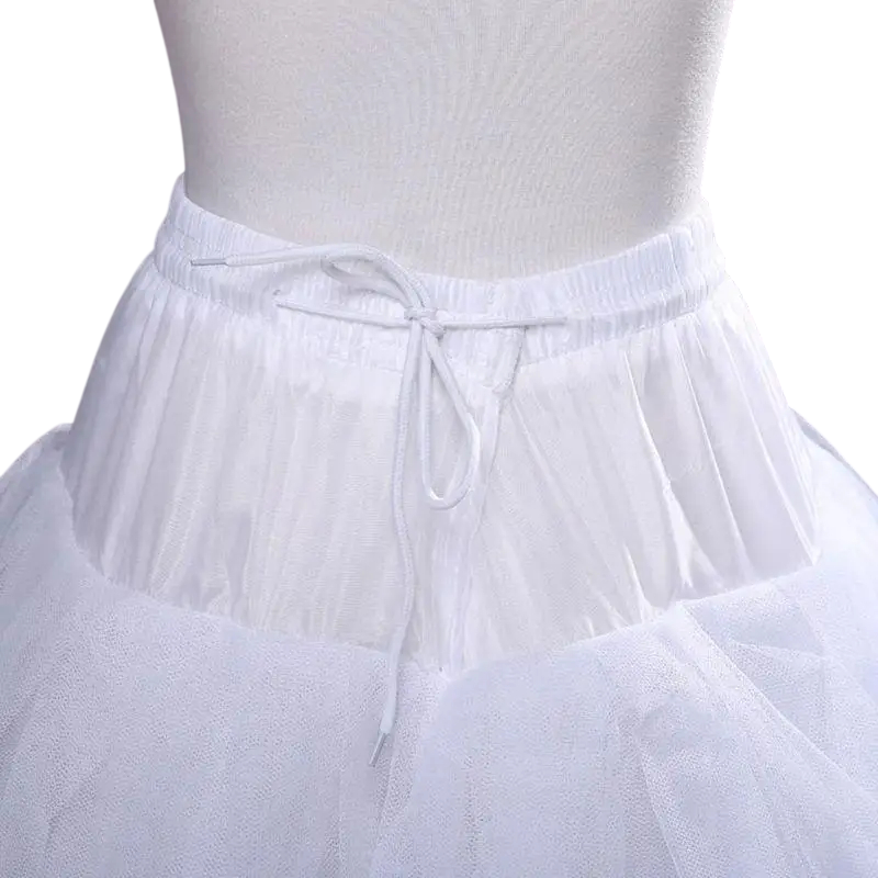 Konstruktionen innehåller fyra lager material som skapar en full och jämn volym längs hela längden. Den integrerade mjuka fodret ökar komforten vid bärande och förhindrar genomskinlighet. Längden 100 cm är idealisk för långa klänningar ner till golvet och hjälper till att skapa en elegant flödande effekt. Den övre delen med midjemått 100 cm ger en stabil passform utan obehagligt tryck. Det lätta materialet säkerställer komfort vid hela dagens användning, vilket du kommer att uppskatta under bröllopsceremonier och sociala evenemang.