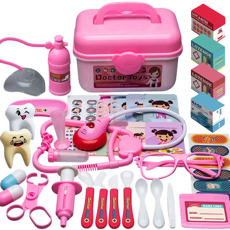 Låt oss leka doktor 42 delar Rosa väska med medicinskt tillbehör Barnens läkar- och tandläkarsats för att leka vård och undersökning