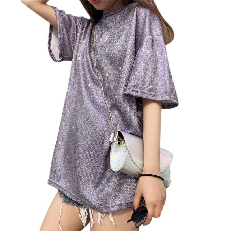 Lång glittrig T-shirt för kvinnor