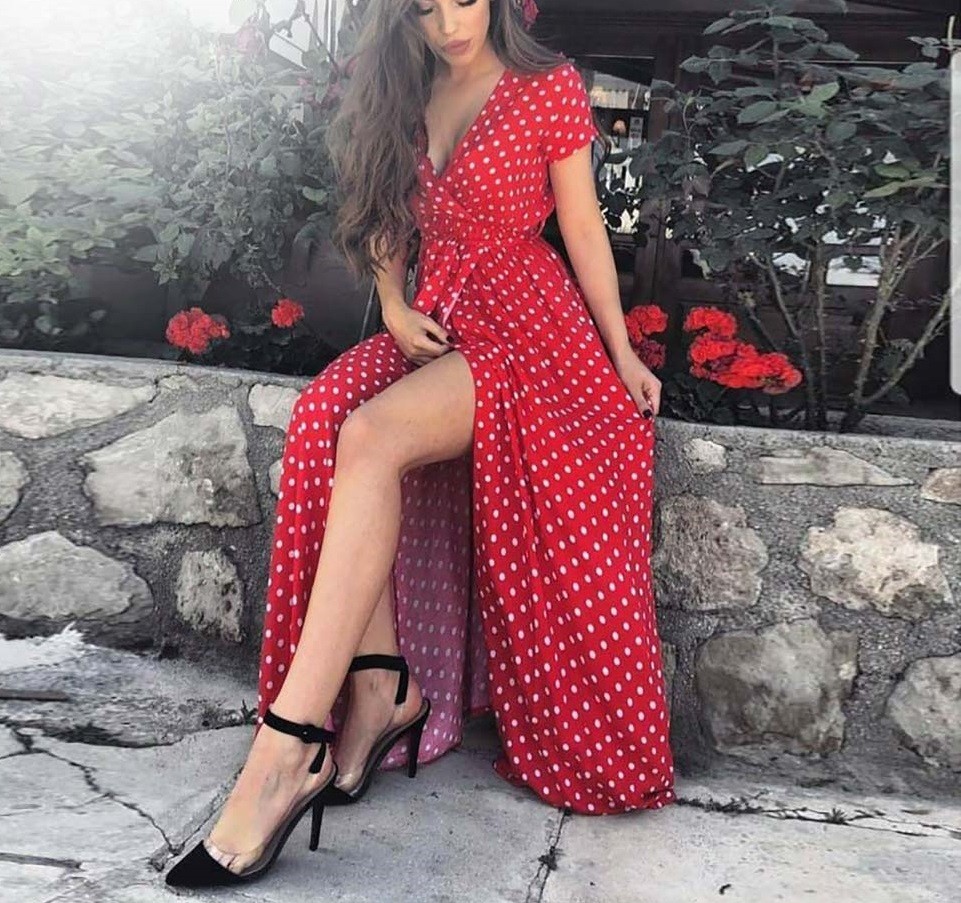 Lång klänning för kvinnor med prickar