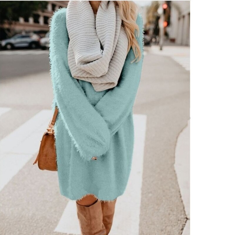 Lång lurvig tröja för kvinnor