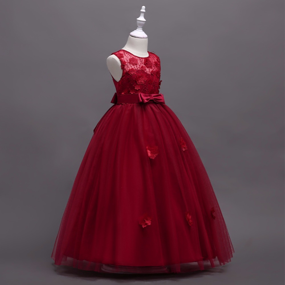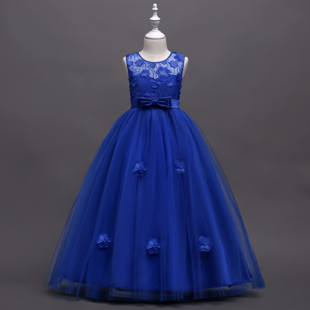 Startsida Startsida Kläder och accessoarer Barnkläder Flickkläder Flickklänningar Lång tjejklänning med blommor och rosett J2901