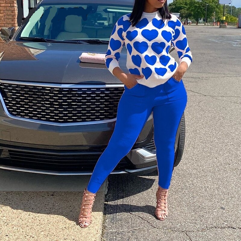 Långärmad topp och byxor för kvinnor