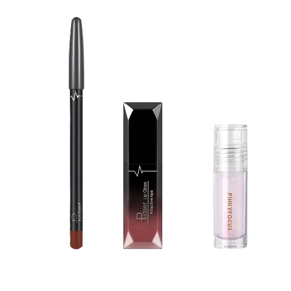 Läppset 3 delar Konturpenna Läppstift med matt finish Återfuktande läppolja icke-klibbig vård för dagligt smink