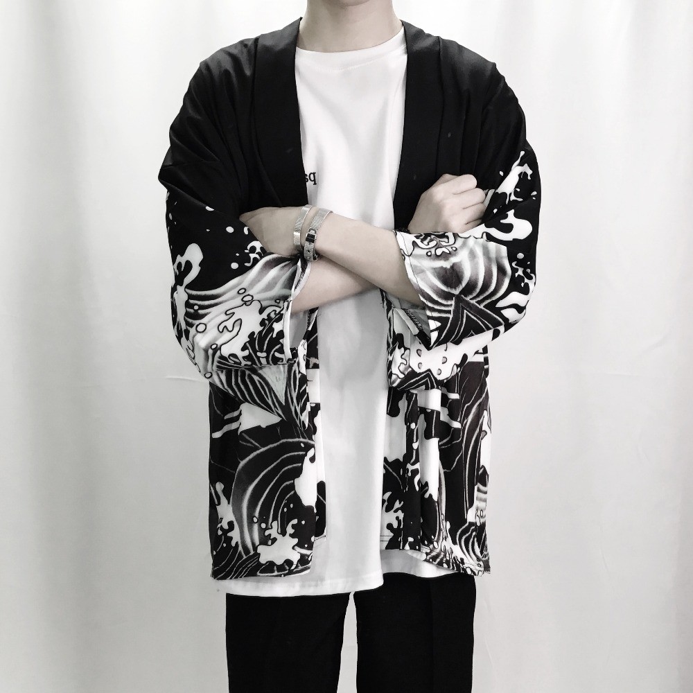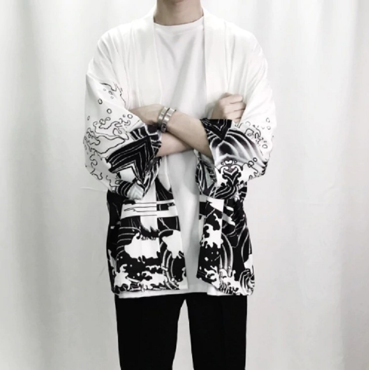 Denna lätta jacka (kimono) är en riktig japansk pjäs.