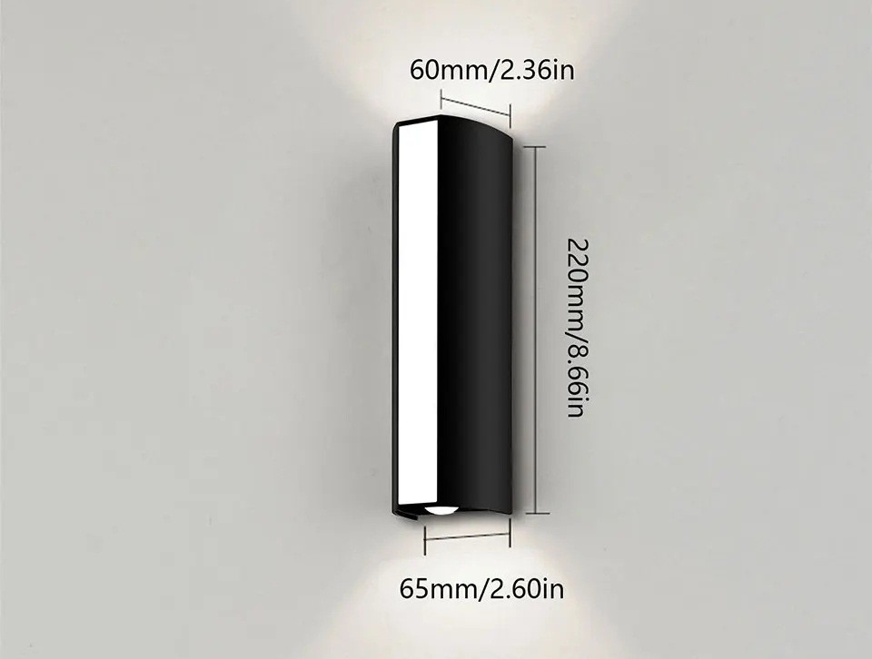LED utomhus vägglampa med varmt vitt ljus, 10W, IP66 vattentålighet, mått 22 x 6 x 6 cm, för utomhusbruk, strömförsörjning AC 85-265V, utan sensor. Fullständig beskrivning