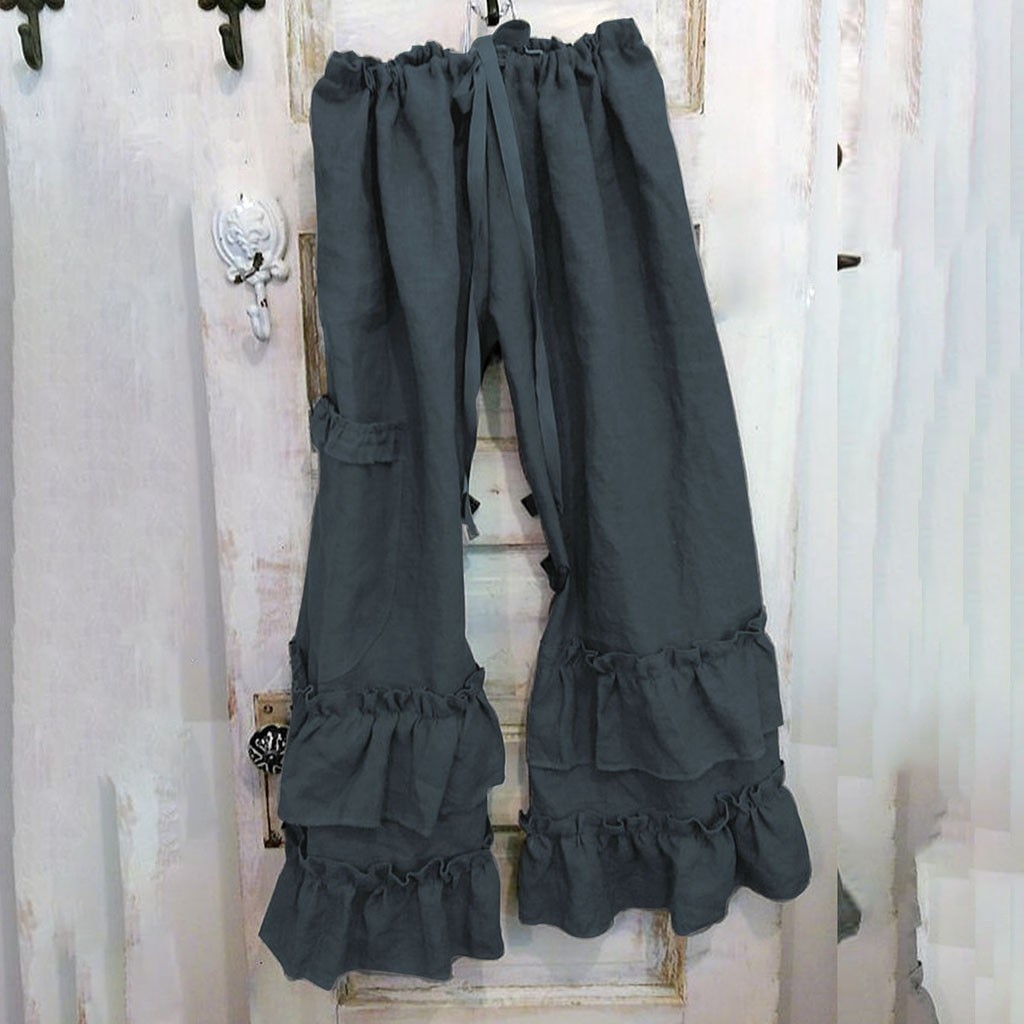 Startsida Startsida Kläder och accessoarer Damkläder Dambyxor Lösa byxor för kvinnor med volanger