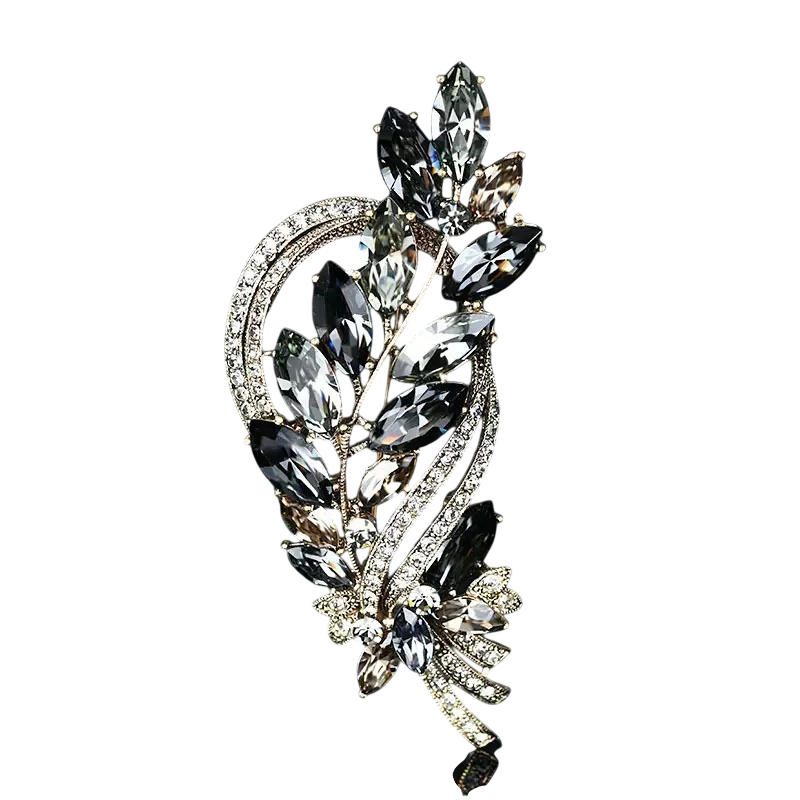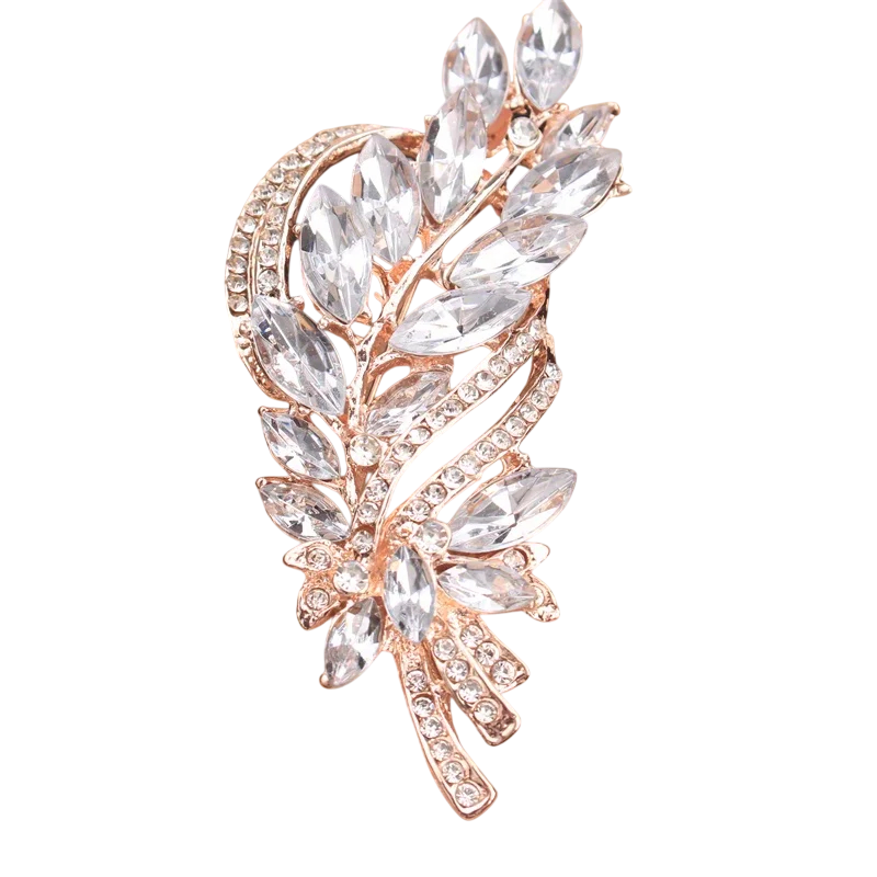 Elegantisk brosch med bladmotiv och glittrande stenar framhäver outfiten med en subtil naturlig detalj och lyxigt utseende. Fullständig beskrivning