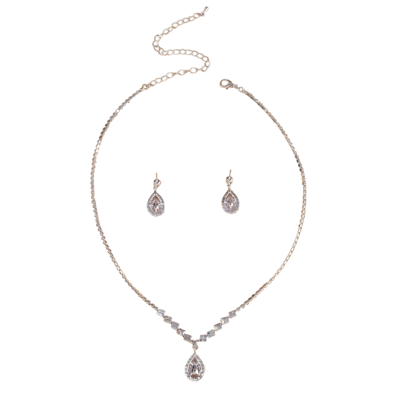 En lyxig smyckesats med droppdesign ger elegans till bröllops- och kvällsoutfits och framhäver den feminina stilen. Fullständig beskrivning