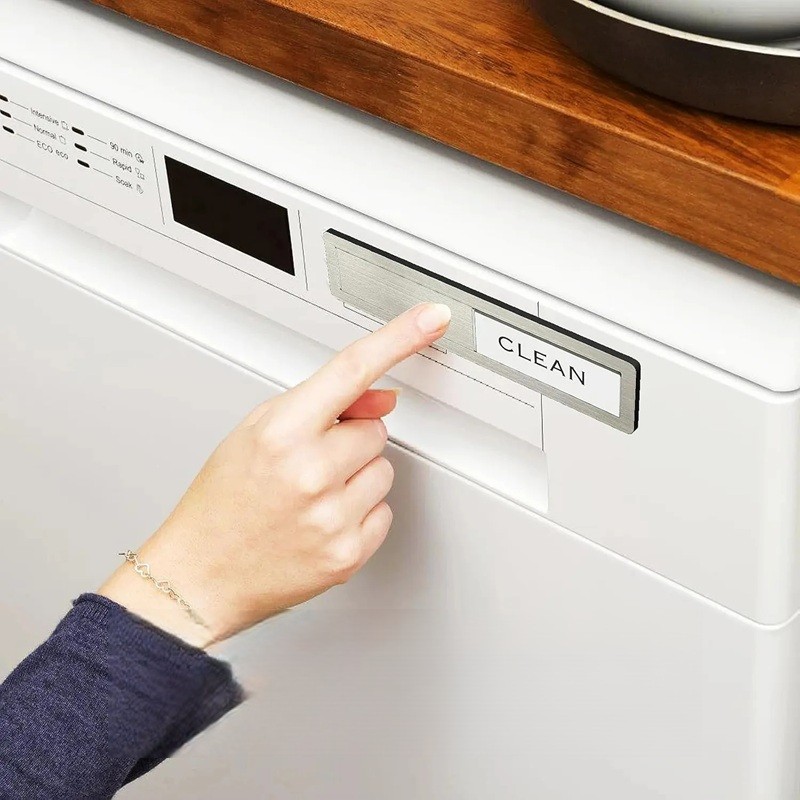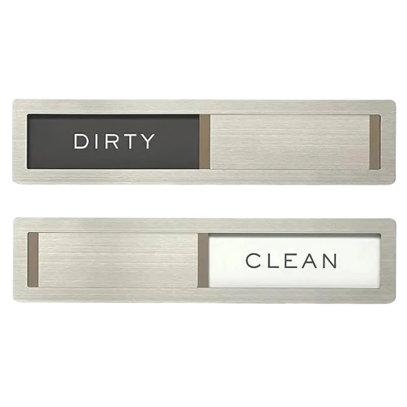 • Omdragbar design – enkel växling mellan inskriptionerna "CLEAN" och "DIRTY".