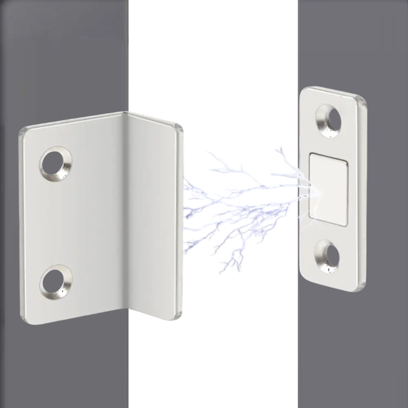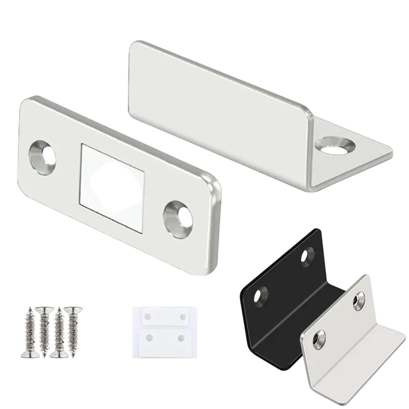 Stark magnetisk dörrstopp av typ L med ultra tunn design för stängning av skåp, lådor och dörrar. Enkel installation med skruvar i förpackningen. Fullständig beskrivning