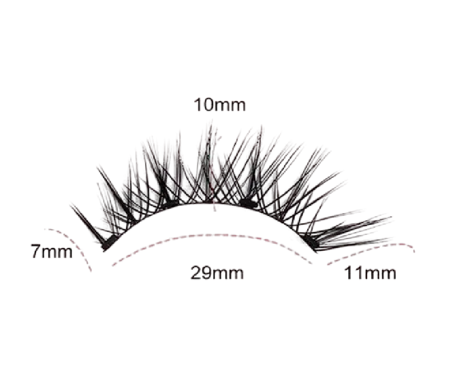Fransarna har en längd på 7–11 mm och en bandbredd på 29 mm, vilket skapar ett harmoniskt och naturligt utseende utan onaturlig belastning på ögonlocken. Tack vare det magnetiska systemet sitter de stadigt på plats och kan samtidigt användas flera gånger. De är utformade för att klara av vanliga dagliga aktiviteter och fuktig miljö. Magnetisk applicering utan lim, 3D naturlig effekt, vattentålig design, återanvändning och snabb applicering med pincett är några av deras största fördelar.