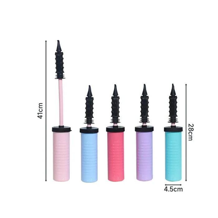 Denna manuella pump för ballonger är en idealisk hjälpare vid förberedelserna av dekorationer till fester, bröllop, födelsedagar och andra sociala evenemang. Tack vare den enkla manuella hanteringen klarar den av att blåsa upp ballonger snabbt och utan ansträngning. Det teleskopiska munstycket möjliggör bättre åtkomst och bekväm användning även för större ballonger. Pumpen är lätt, bärbar och tillverkad av hållbara material, vilket gör att den tål frekvent användning. Den är lämplig för både hemmabruk och professionellt bruk.