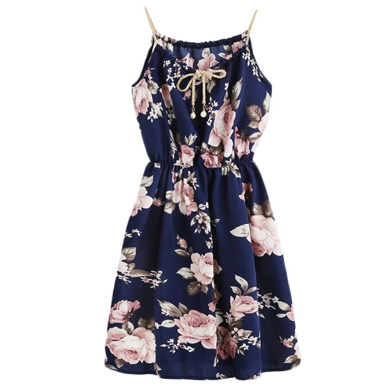 Marinblå blommig klänning