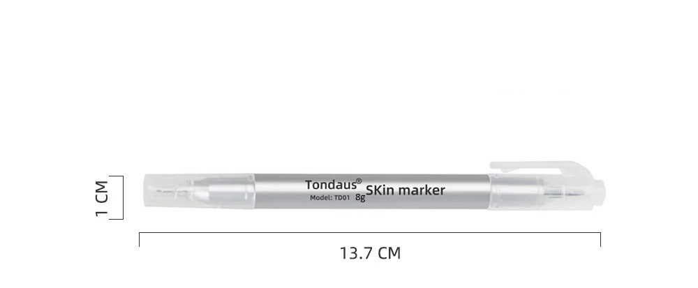 Märkpenna för huden 14 cm Lila dubbeländad penna för tatuering, formning av ögonbryn och läppar, kosmetisk märkning Märkpenna för huden är ett praktiskt kosmetiskt verktyg avsett för exakt förritning av linjer och former på huden. Den används vid tatuering, formning av ögonbryn, märkning av läppar eller vid andra kosmetiska och dekorativa justeringar av utseendet. Tack vare den fina spetsen möjliggör den att skapa rena, tunna och välkontrollerade linjer som underlättar noggrant arbete. Pennan har en dubbeländad design, där varje ände erbjuder en annan spetsbredd. Detta gör det möjligt att anpassa ritningen efter behov, oavsett om det handlar om detaljerade linjer eller mer framträdande märkning. Den totala längden på pennan är cirka 14 cm, vilket säkerställer ett bekvämt grepp och god hantering vid arbete. Lila färg på märket är väl synlig på huden och hjälper till att bibehålla noggrannheten vid ritning av former. Märkpenna är lämplig både för professionellt kosmetiskt bruk och för kreativt arbete hemma. Den är lätt, kompakt och lätt att transportera, så att den alltid kan finnas till hands vid arbete hemma eller på resande fot. Färgen är avsedd för ritning på hudytan och kan tas bort efter användning med vanliga rengöringsmedel avsedda för huden.